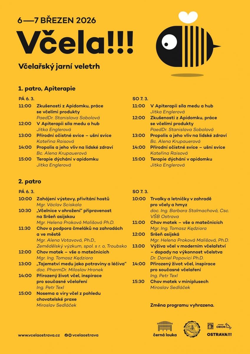 Na Černé louce v Ostravě se v pátek 6. a sobotu 7. března 2026 setkají nadšenci včelaření a milovníci včel, ať už jde o zkušené včelaře, začátečníky, výrobce a prodejce včelích produktů nebo návštěvníky z řad laické veřejnosti.